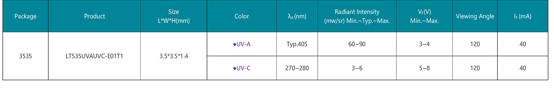 CHIP LED封裝的3535正貼UVA/C雙色產(chǎn)品